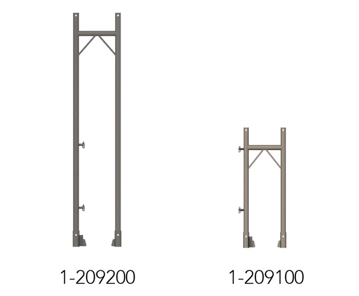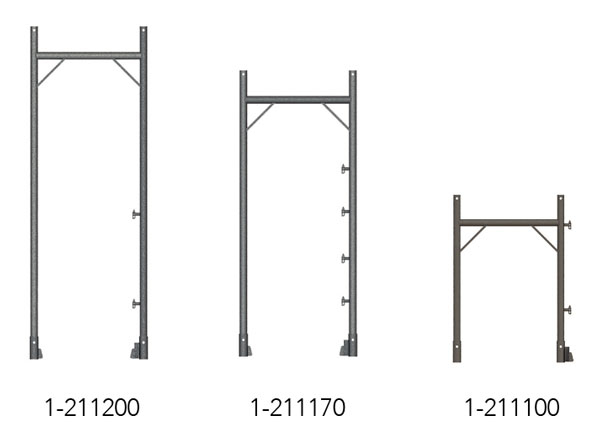 I telai per ponteggi MATO 1 sono disponibili in larghezze di 70 cm e 100 cm. A seconda dell'altezza e del carico massimo, vengono utilizzati telai in acciaio con uno spessore delle pareti di 2,7 mm o telai in alluminio con uno spessore di 4 mm. Per carichi particolarmente pesanti, sono disponibili telai in acciaio con spessore delle pareti di 3,25 mm, pienamente compatibili con il telaio leggero standard.